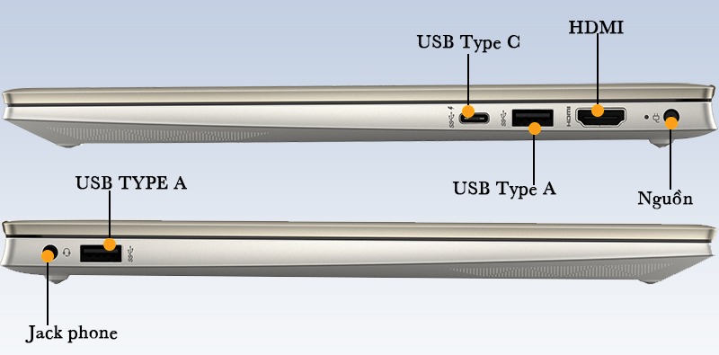 - Còn ở phía cạnh phải, bạn sẽ thấy các cổng kết nối hữu ích khác. Đầu tiên, có 1 cổng DC-in để sạc laptop. Tiếp theo, 1 cổng HDMI giúp bạn kết nối máy tính với màn hình ngoài hoặc TV, tạo điều kiện thuận lợi cho công việc và giải trí. Ngoài ra, còn có 1 cổng USB 3.2 và 1 cổng USB TypeC, đảm bảo rằng bạn có nhiều tùy chọn kết nối với các thiết bị khác nhau. Cuối cùng, có 1 khe đọc thẻ SD, giúp bạn dễ dàng truy cập vào dữ liệu từ các thiết bị lưu trữ di động.