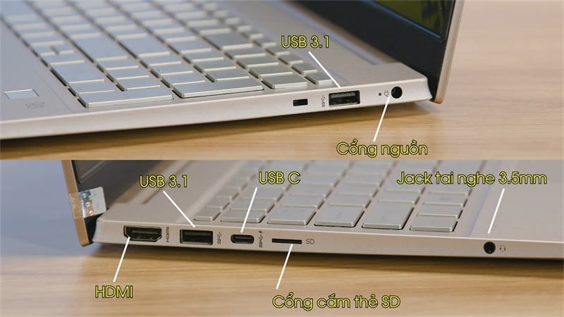 Hp pavilion 15 i5 được tích hợp khá đầy đủ các cổng kết nối giúp các bạn dễ dàng liên kết với các thiết bị ngoại vi khác một cách dễ dàng và nhanh chóng. Cụ thể, các cổng kết nối của chiếc laptop này bao gồm: 2 cổng USB 3.1, HDMI, USB Type-C, jack cắm âm thanh 3.5 mm và cổng nguồn cùng 1 cổng cắm thẻ nhớ microSD.