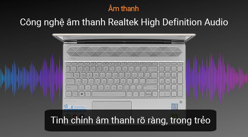 - Hp 15 được tinh chỉnh bởi công nghệ Realtek High Definition giúp âm thanh to rõ, chi tiết, để bạn có được trải nghiệm nghe nhạc, xem phim với chất lượng âm thanh tuyệt vời.