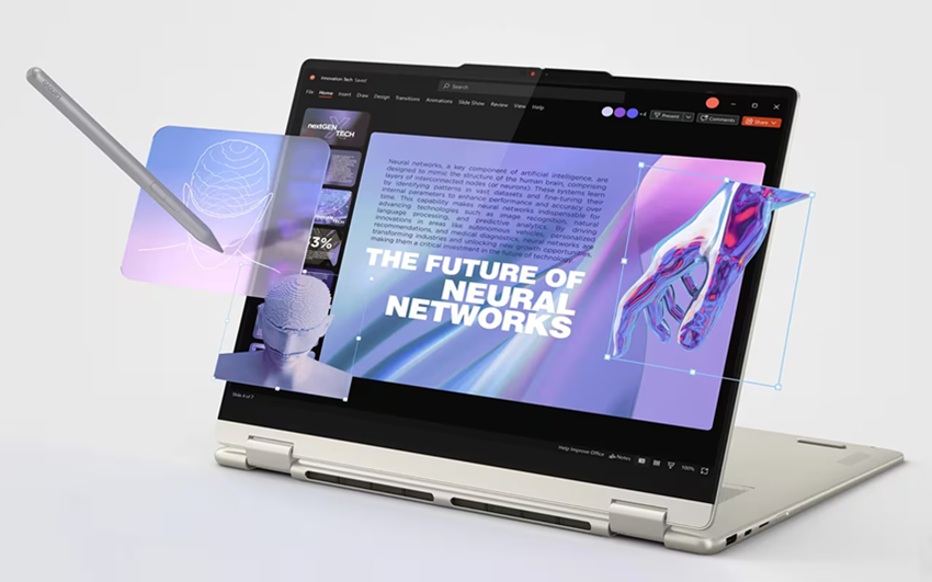 - Lenovo Yoga 7 2-in-1 16AKP10 được trang bị vi xử lý AMD® Ryzen™ AI thế hệ mới, mang đến hiệu năng ấn tượng cho cả công việc lẫn giải trí. Nhờ sức mạnh xử lý vượt trội, máy có thể “cân” tốt các tác vụ nặng như chỉnh sửa video, thiết kế đồ họa hay thậm chí là chơi game ở mức phù hợp mà vẫn đảm bảo độ mượt mà. Không chỉ mạnh, con chip này còn tối ưu điện năng hiệu quả, giúp kéo dài thời lượng pin trong quá trình sử dụng hàng ngày.