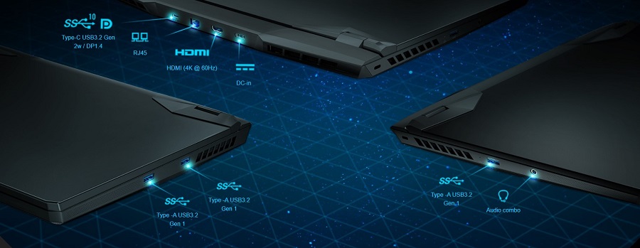 Msi gp76 leopard 11ug được trang bị các cổng I / O hoàn chỉnh để hỗ trợ tất cả các loại truyền dữ liệu hoặc đầu ra hiển thị, tối đa hóa khả năng kết nối của nó. Với mạng LAN và các cổng hiển thị được đặt ở phía sau, người dùng không còn bối rối bởi những sợi dây cáp lộn xộn. Nó có cho mình tất cả cổng kết nối hiện đại và hợp thời nhất như: 1 x HDMI, 1 x Mini Display Port, 1 x USB Type-C, 2 x USB 3.1, 1 x Jack Audio™, 1 x MicroSD Reader, 1 x LAN RJ45 Gigabit, 1 x Webcam, 1 x Hi-Res Audio™ with Nahimic 3 Audio™, 1 x Giant Speaker with 2 Speaker, 1 x Steelseries Engine 3, 1 x CoolerBoost 5 (2 Fans with 7 heat pipes).