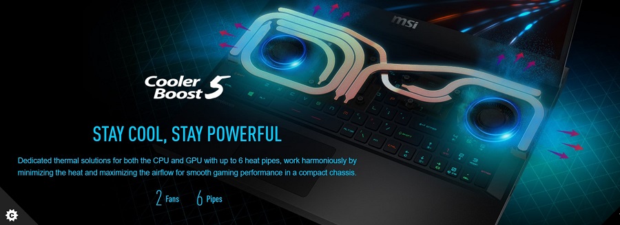 Laptop gp76 leopard 11ug 823vn được trang bị thống tản nhiệt độc quyền Cooler Boots dùng cho CPU và GPU giải nhiệt tối đa bằng 2 quạt và 6 ống dẫn nhiệt. Bằng cách mở rộng đường kính bên trong của ống dẫn nhiệt và sử dụng mỡ tản nhiệt độc quyền của MSI để đảm bảo hiệu suất tối đa trong những cuộc chiến game quyết liệt.