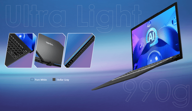 - MSI Prestige 13 AI là một dòng laptop ultrabook hàng đầu trong thị laptop văn phòng, được sản xuất từ những nguyên liệu nhôm cao cấp, thể hiện tính bền bỉ và ổn định của sản phẩm. Sự sáng tạo trong việc áp dụng nhôm Aluminium còn làm tôn lên vẻ đẹp sang trọng và độc đáo, giúp cho Prestige 13 trở nên mảnh mai và tinh tế hơn hẳn.