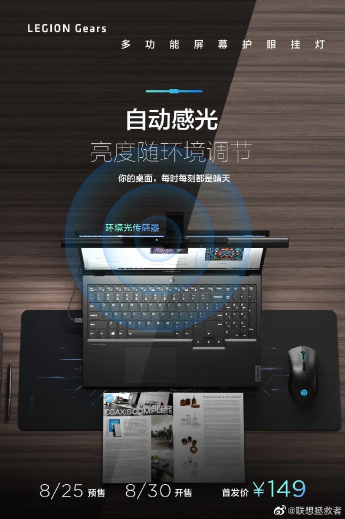 Lenovo đã ra mắt hai phụ kiện mới cho thương hiệu Lenovo Gears, bao gồm đèn treo màn hình và chuột chơi game không dây Gears M600. Đèn có giá 149 nhân dân tệ (khoảng 500 ngàn đồng) và cho đặt mua trước từ ngày 25 tháng 8 (chính thức mở bán từ ngày 30).