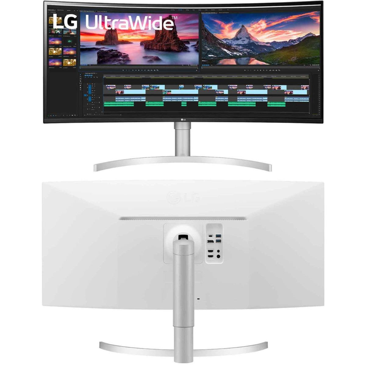 Về kết nối, LG 38WN95C-W được trang bị hai cổng HDMI, một cổng Display Port, hai cổng USB 3.0, một cổng Thunderbolt 3, một jack cắm âm thanh 3.5mm và một cổng cắm nguồn. Màn hình sử dụng chân đế hình vòm, có thể điều chỉnh độ ngả và độ cao một cách dễ dàng.