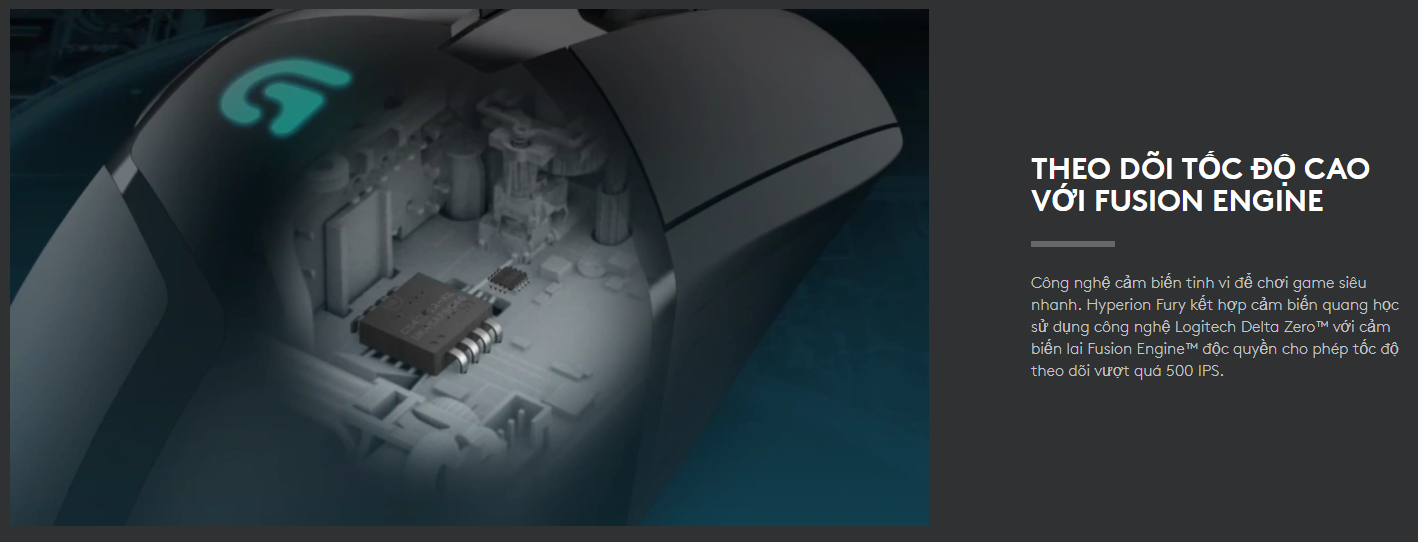 Công nghệ cảm biến tinh vi để chơi game siêu nhanh. Hyperion Fury kết hợp cảm biến quang học sử dụng công nghệ Logitech Delta Zero™ với cảm biến lai Fusion Engine™ độc quyền cho phép tốc độ theo dõi vượt quá 500 IPS.