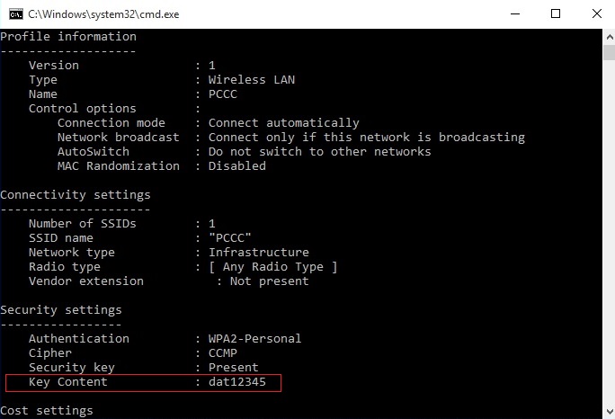 Rất đơn giản đúng không các bạn, như vậy là chúng ta sẽ có thể xem được mật khẩu wifi của mạng PCCC ở phần Key Content rồi đó