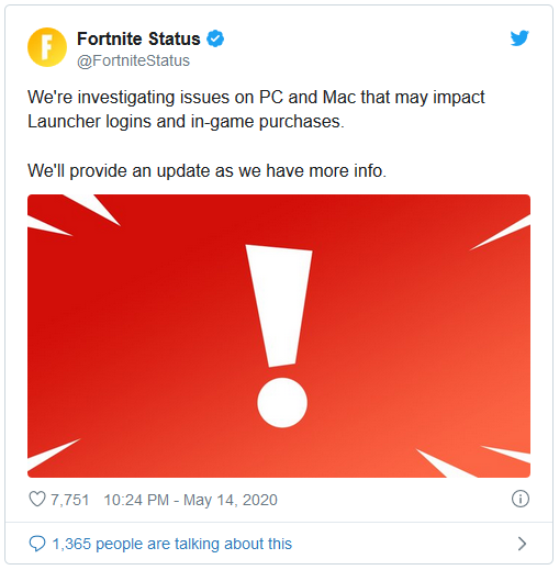 Tựa game Fornite cũng thông báo bị ảnh hưởng trên Twitter