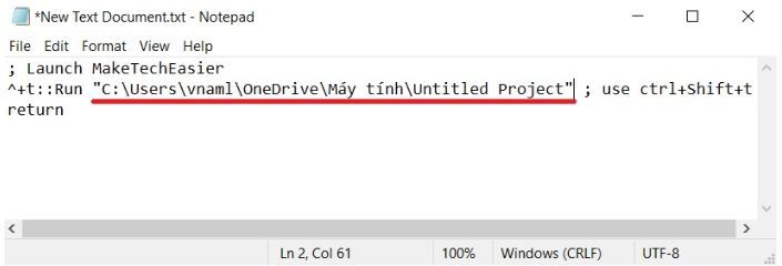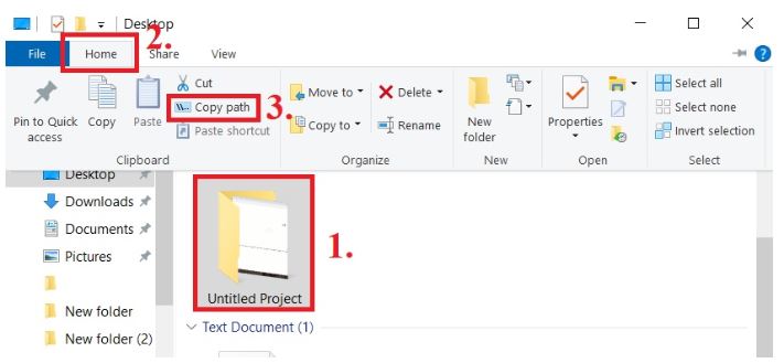 Bước 5: Bạn sẽ cần phải thay chữ A bên trong đoạn code bằng đường dẫn địa chỉ tới vị trí của thư mục bạn muốn cài phím tắt. Cách làm cũng đơn giản, bạn chỉ cần mở File Explorer lên rồi click chuột vào thư mục bạn muốn. Sau đó chọn mục Home rồi chọn Copy path là được.