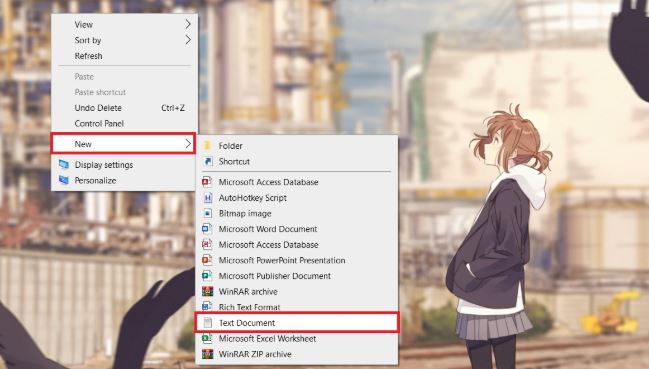 Bước 3: Tiếp theo, click chuột phải vào desktop chọn New rồi chọn Text Document để tạo một Notepad.
