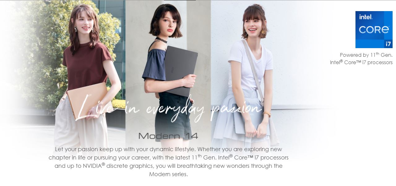 Cuối năm 2020, MSI công bố ra mắt dòng máy tính MSI Modern 14 Gen 11th với nhiều cải tiến so với người đàn em gen 10th. Mordern 14 được đánh giá là mẫu laptop có hiệu năng cực cao khi trang bị CPU Intel 11th và có thiết kế sang trọng, nhỏ gọn tăng tính cơ động và có thời lượng pin "trâu" sẽ rất phù hợp với giới doanh nhân, những bạn trẻ đam mê sáng tạo, thích sự năng động. Sự kết hợp hoàn hảo của nó khiến cho công việc, học tập hàng ngày trở nên đơn giản hơn bao giờ hết.