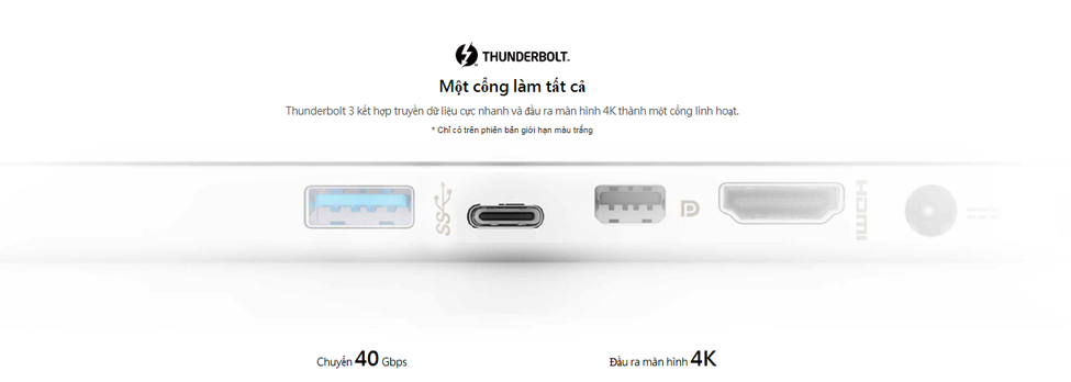 | Cổng giao tiếp | 1x Type-C (USB3.2 Gen2 / DP / Thunderbolt™3) 2x Type-A USB3.2 Gen1 1x Type-A USB3.2 Gen2 1x RJ45 1x (4K 60Hz) HDMI 1x Mini-DisplayPort |