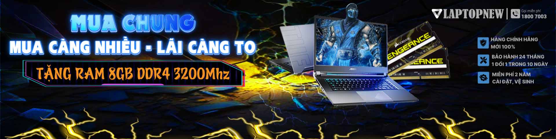 - Tặng RAM 8GB DDR4 3200MHz / MÁY (Ví dụ: 5 người cùng mua LAPTOP trên 1 hoá đơn sẽ được nhận 5 cây RAM 8GB DDR4 tương đương cho 5 khách hàng)