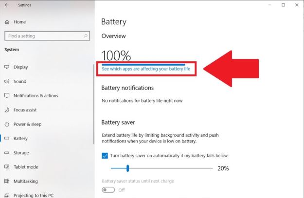 ✓ Ngoài ra, Windows cũng cho phép các bạn xem ứng dụng nào sử dụng nhiều pin nhất để biết mà tắt bớt nếu không quá cần thiết. Các bạn có thể mở Settings → System → Battery rồi click vào dòng “See which apps are affecting your battery life”.