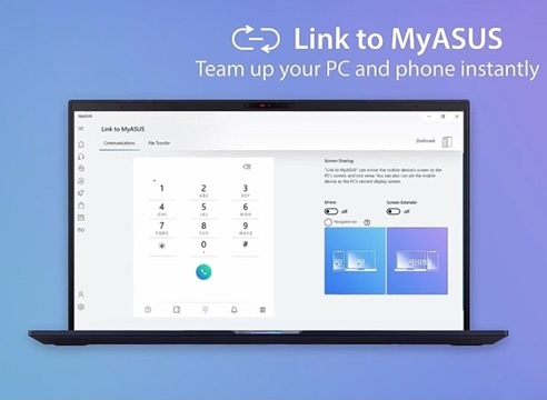 Tính năng "Link to MyASUS" cung cấp khả năng kết nối máy tính và điện thoại thông minh mà không cần phải sử dụng cáp nối. Người dùng chỉ cần tải về ứng dụng Link to MyASUS lên smartphone chạy iOS hoặc Android. Liên kết này cho phép người dùng chuyển dữ liệu, điều khiển smartphone trên máy tính, dùng điện thoại như màn hình thứ hai, hoặc truy cập các tập tin laptop từ xa trên điện thoại.