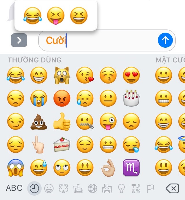 Nếu việc tìm kiếm nhiều hơn ở dạng tổng quát, kết quả sẽ khớp với tất cả các biểu tượng cảm xúc có thể áp dụng mà không phải chỉ biểu tượng duy nhất. Vì vậy, người dùng có thể chọn chính xác nhất những gì mình muốn sử dụng. Nếu thoát khỏi kết quả tìm kiếm bằng cách nhấp vào biểu tượng danh mục khác ở phía dưới, người dùng có thể nhấp vào hình kính lúp để xem lại chúng khi cần.