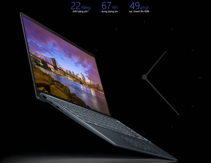 ✓ Với thời lượng pin 22 giờ tuyệt vời của Asus Zenbook 14 UM425, việc di chuyển mà không mang theo sạc không phải vấn đề gì nghiêm trọng. Khi bạn cần sạc pin, tính năng sạc nhanh có thể khôi phục mức pin tới 60% chỉ trong 49 phút, vì vậy bạn sẽ sẵn sàng hành trang trong chớp mắt.