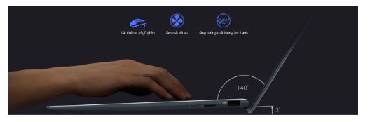 ✓ Bản lề ErgoLift được chế tạo chính xác giúp tự động nâng phần sau của laptop một cách từ từ khi mở nắp máy, nghiêng bàn phím tới góc gõ tối ưu, không những vậy còn giúp âm thanh nâng cao và cải thiện hiệu quả làm mát.