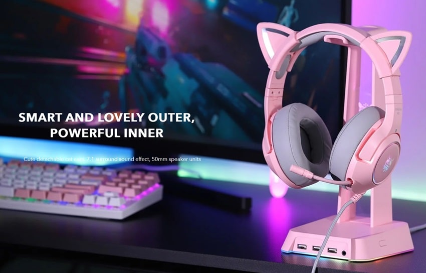 THÔNG TIN VÀ ĐÁNH GIÁ CHI TIẾT HEADSET GAMING ONIKUNA K9 CAT EAR WITH CABLE USB – PINK / BLACK