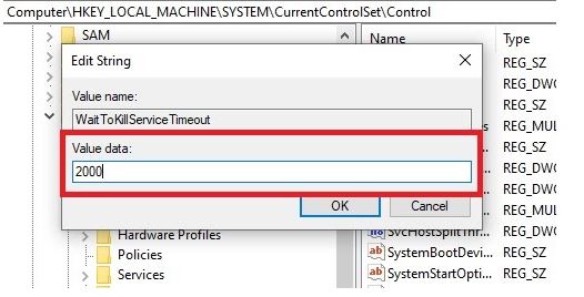 ✓ Thật ra, con số 5000 này chính là thời gian mà máy tính phải chờ những dịch vụ không phản hồi được tính bằng Mili giây (1/1000 giây). Việc chuyển xuống 2000 là bạn đang giảm bớt thời gian mà máy tính phải chờ những dịch vụ này. Tuy nhiên, bạn không nên nhập một con số nào đó dưới 2000 .