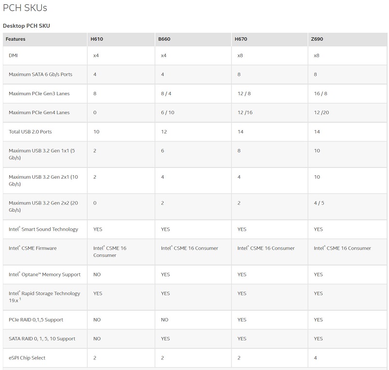 Trong một vài cập nhật mới về Intel trên một vài trang thông tin trên mạng rằng Intel dường như đã quên xóa thông số kỹ thuật của các chipset Z790, H770 và B760 sắp ra mắt của mình. Mặc dù vậy, chipset H610 sẽ không được đề cập trong cập nhật mới.