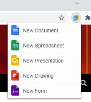 Tiện ích mở rộng này cho phép bạn bắt đầu nhanh chóng một tài liệu, bảng tính, bản trình bày, bản vẽ hoặc biểu mẫu Google Drive mới. Nhấp vào biểu tượng Tạo nhanh của Google Tài liệu trên thanh công cụ Chrome và một bảng điều khiển mở ra hiển thị các phím tắt biểu tượng. Nhấp vào một để khởi chạy ứng dụng văn phòng Google Drive tương ứng (Google Tài liệu, Trang tính, Trang trình bày, v.v.) bên trong tab trình duyệt mới.