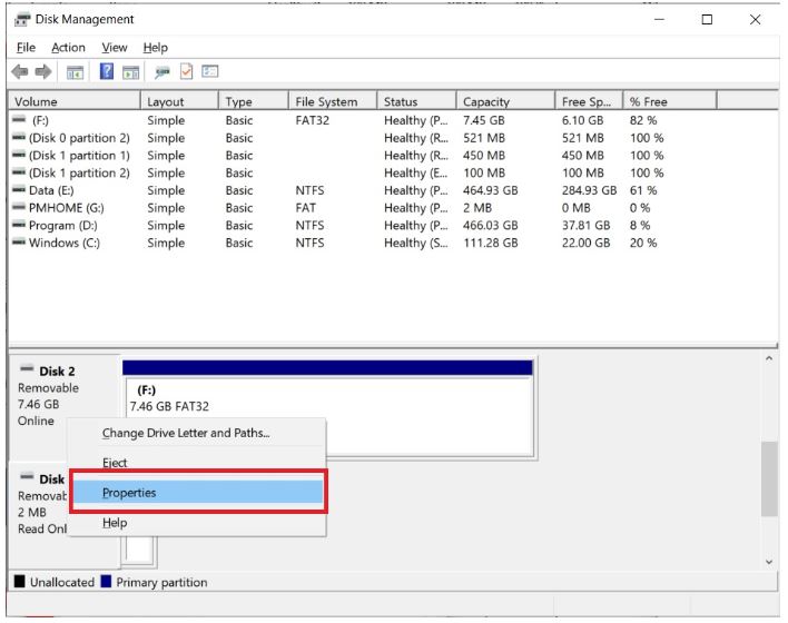 ✓ Tiếp theo, bạn click chuột phải vào phần tên của USB và chọn Properties. Nếu không chắc đâu là USB cần tìm thì bạn kiểm tra phần chữ cái trong File Explorer nhé.