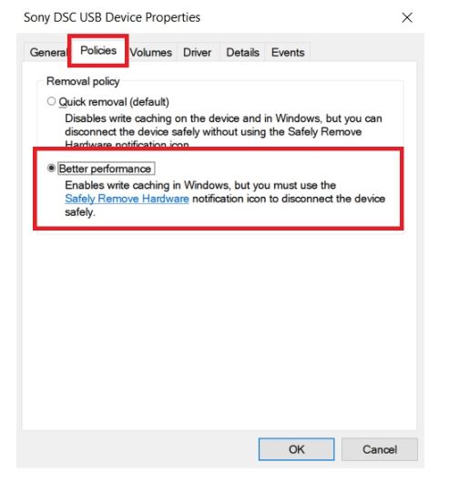 ✓ Cuối cùng, bạn mở tab Policies và chọn Better Performance rồi OK là hoàn tất.