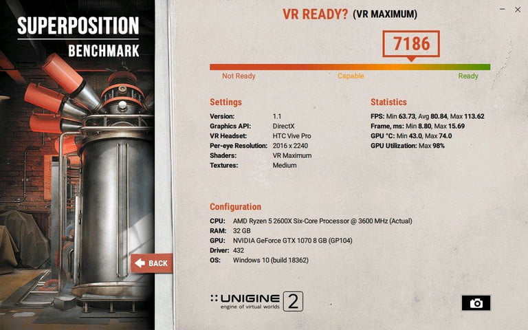 - Bạn không muốn trả tiền cho phần mềm đo điểm chuẩn của mình? Superposition, sử dụng công cụ Unigine, là một trong những tùy chọn miễn phí tốt nhất hiện có để kiểm tra hiệu suất và độ ổn định, với bảng xếp hạng toàn cầu mà bạn có thể kiểm tra khi muốn thúc đẩy nỗ lực ép xung của mình hơn nữa. Nó cũng bao gồm một số chế độ hữu ích, bao gồm tùy chọn chuyển vùng miễn phí với một tập hợp các trò chơi nhỏ, nhiệt độ GPU liên tục và theo dõi đồng hồ và các thử nghiệm dành riêng cho chơi game thực tế ảo (VR) (không phải lúc nào cũng dễ dàng tìm thấy miễn phí) .