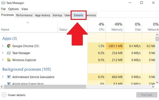 Bước 2: Khi cửa sổ Task Manager hiện lên, bạn chọn mục Details.