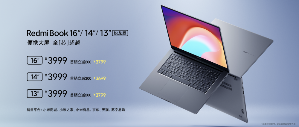 Bộ ba chiếc RedmiBook mới bao gồm 3 phiên bản kích thước: RedmiBook 13, 14 và 16. Cả ba đều được trang bị con chip AMD Ryzen 4000 series mới nhất. Các phiên bản sẽ lần lượt có mức giá:
